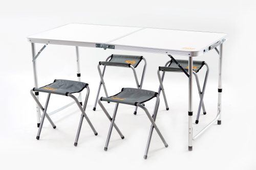 - А яке зручне зберігання! Стіл складається як валізка, стільці компактно складаються, і все це разом поміщається в спеціальний чохол. Плануєте поїздку на природу? Весь набір займе мінімум місця у багажнику авто.