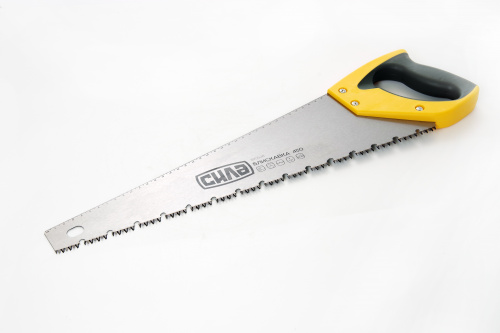 Призначена для розпилювання заготовок середніх розмірів з деревини м'яких та твердих порід. Має загартований та розведений зуб з 3-х гранним заточенням, що дозволяє виробляти пиляння в обох напрямках. Пила оснащена запобігає її прослизу в руці двокомпонентної (пластмаса + гума) ручкою закритої форми, яка кріпиться до полотна гвинтами. Полотно із сталі.