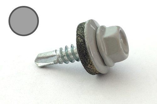 Саморіз з шест. гол. с шайб. EPDM 4.8х19 DIN 7504K RAL 9006 зі св. до мет. (пач. 50 шт.) (паков - 5