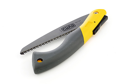 Садова ножівка складана - інструмент для обрізання великих гілок (більше 3 см в діаметрі). Зрізати подібні гілки секатором небезпечно, так як він може просто зламатися. Така ножівка зручна тим, що її можна скласти вдвічі, таким чином агрегат ставатиме компактніше і переносити її набагато безпечніше.