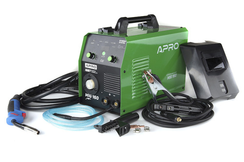 Зварювальний напівавтомат інверторний APRO MIG-160, 20-160А, ел.4мм, пр.0.8-1мм 5кг 2.5+1.5+3м (набі
